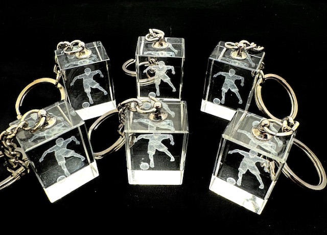 Großhandel – Kristall Fußballkind Schlüsselanhänger Set – 3D Lasergravierte Glaskubus (6 Stück)