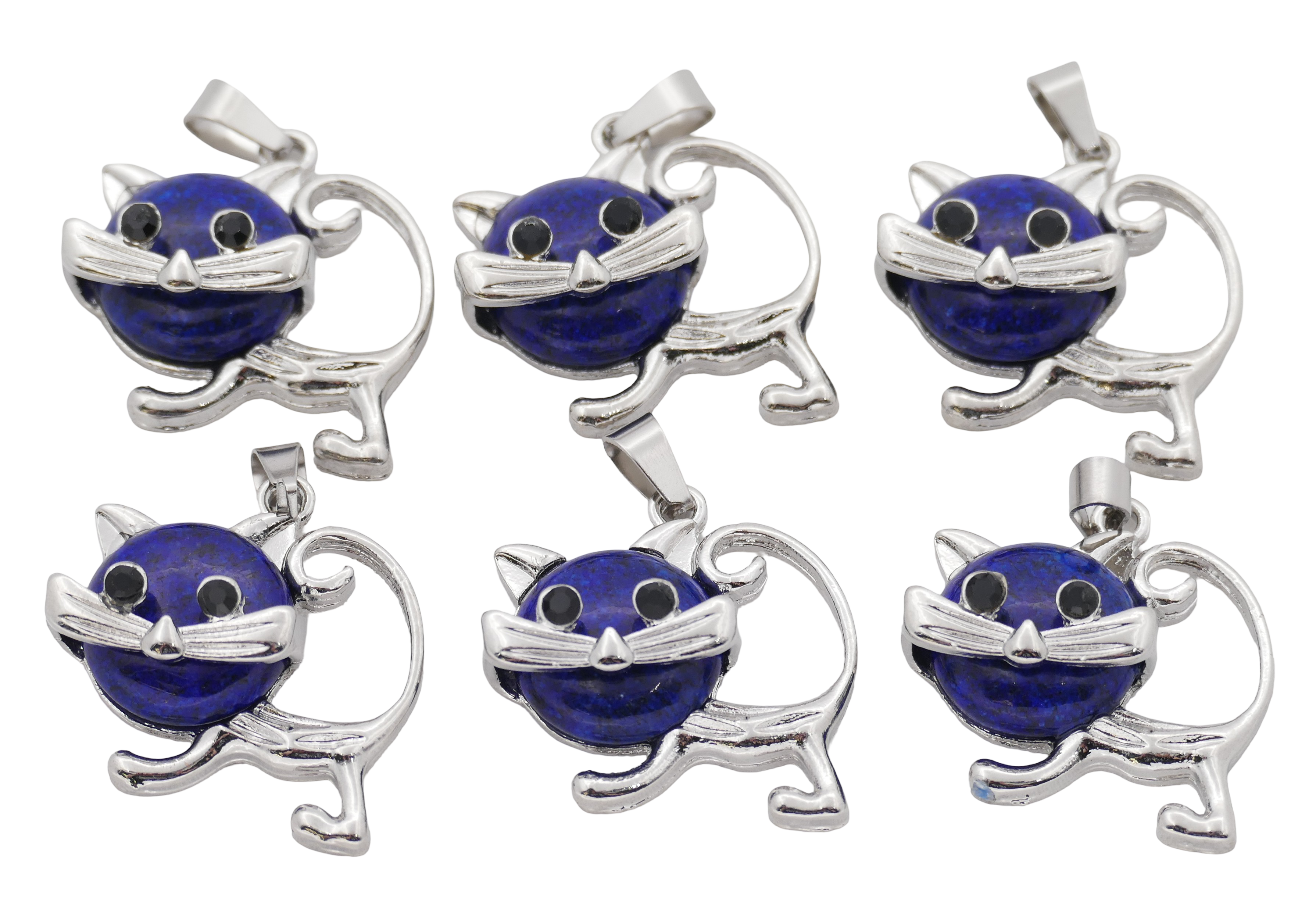 Großhandel – Lapis Lazuli Katzen-Anhänger aus Edelstein (Set mit 6 Stück)