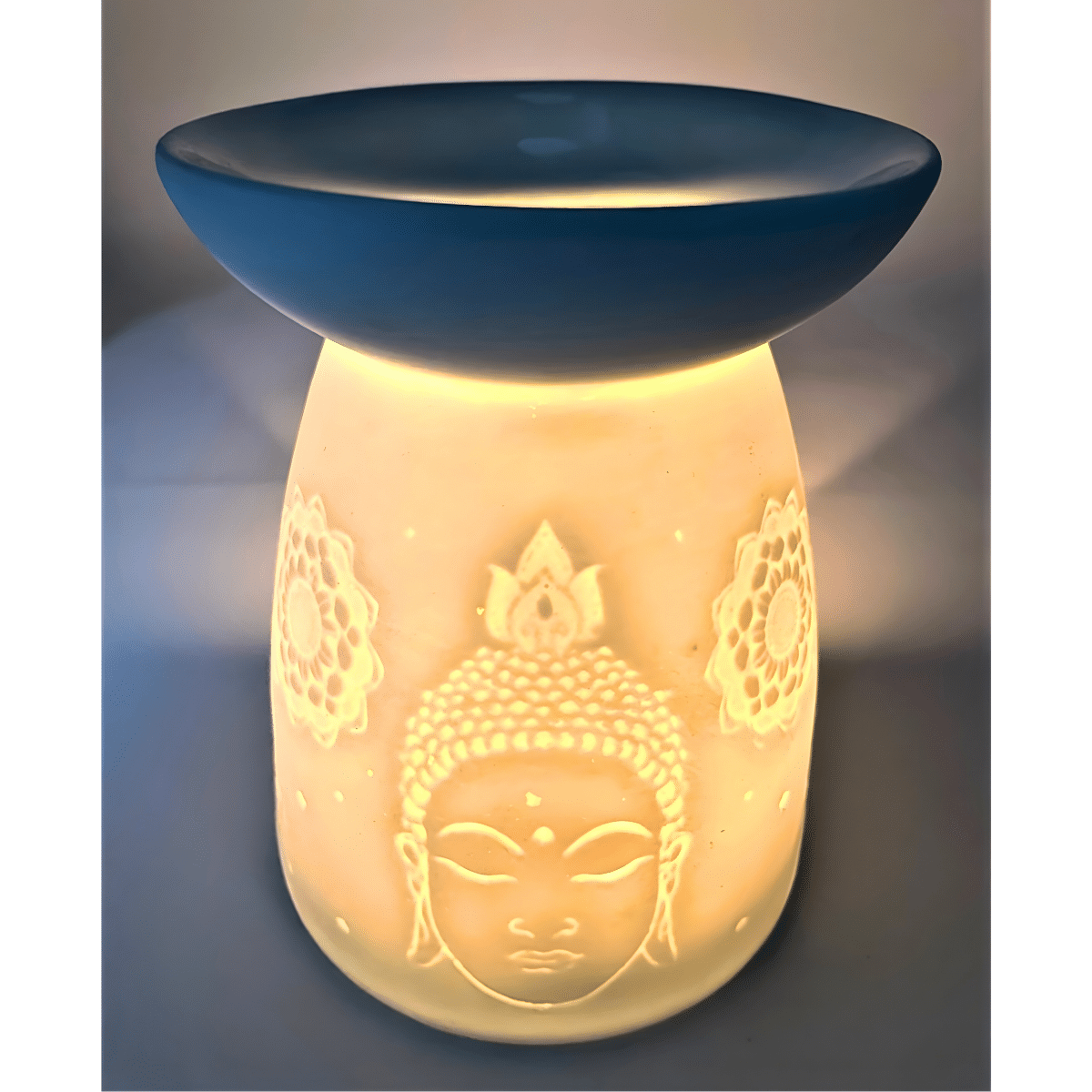 Keramik-Duftölbrenner Buddha-Kopf Hellblau (Luxus)s