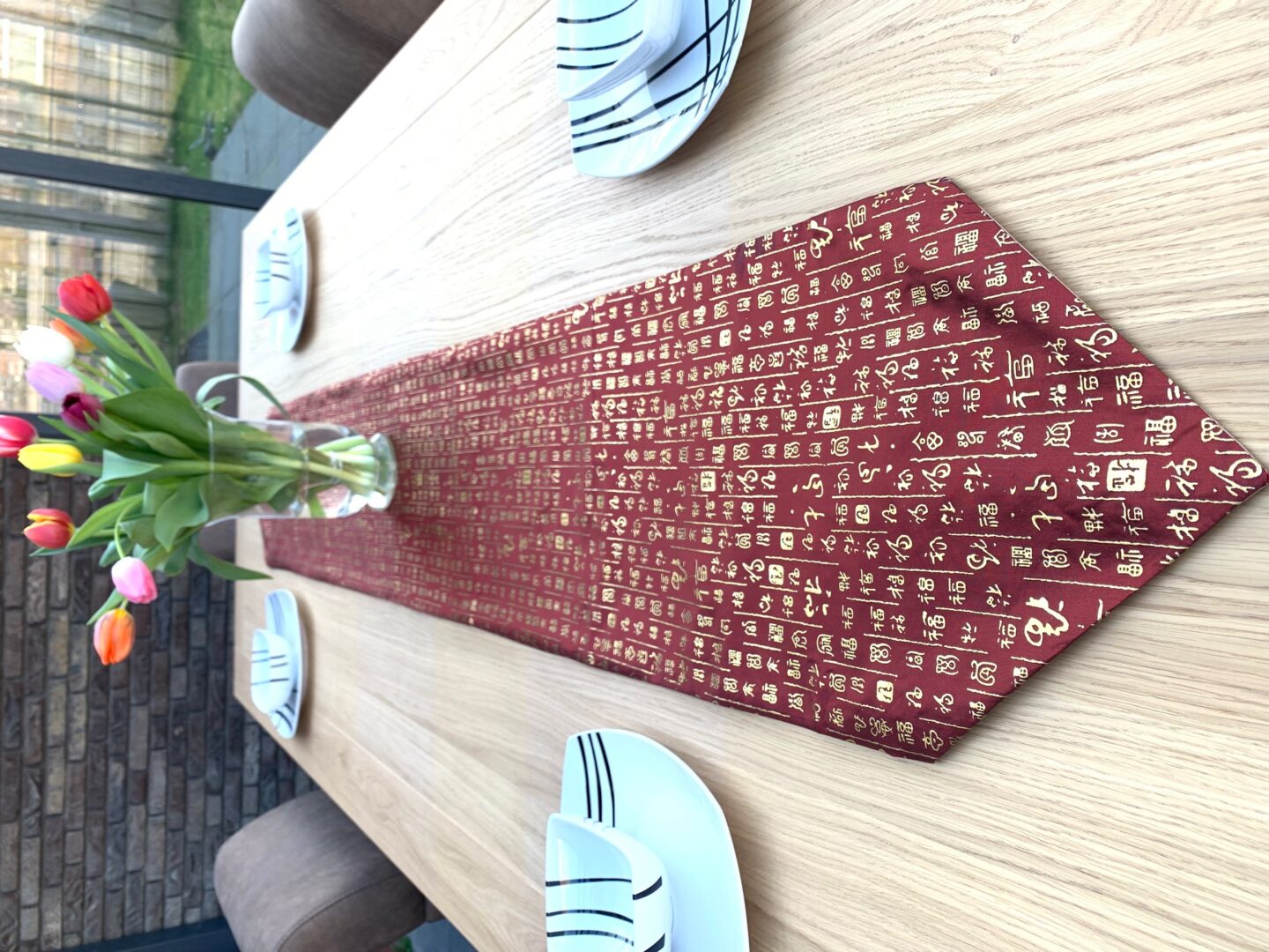 Eleganter bestickter Tischläufer – Burgunderrotfarbener dekorativer Tischläufer