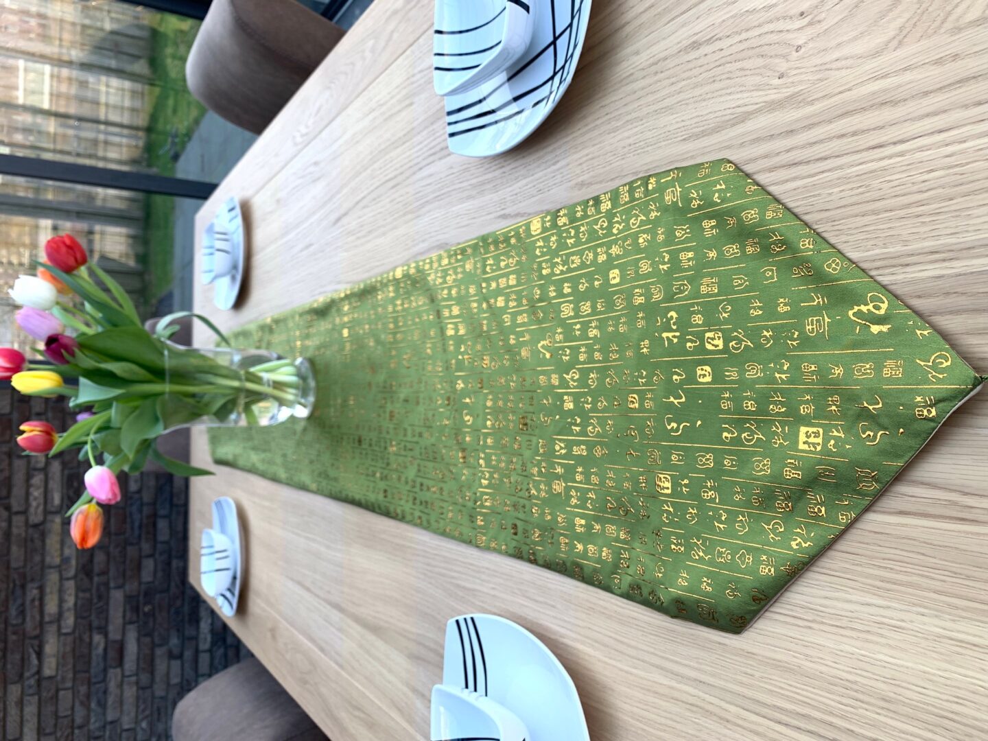 Eleganter bestickter Tischläufer – Olivgrünfarbener dekorativer Tischläufer
