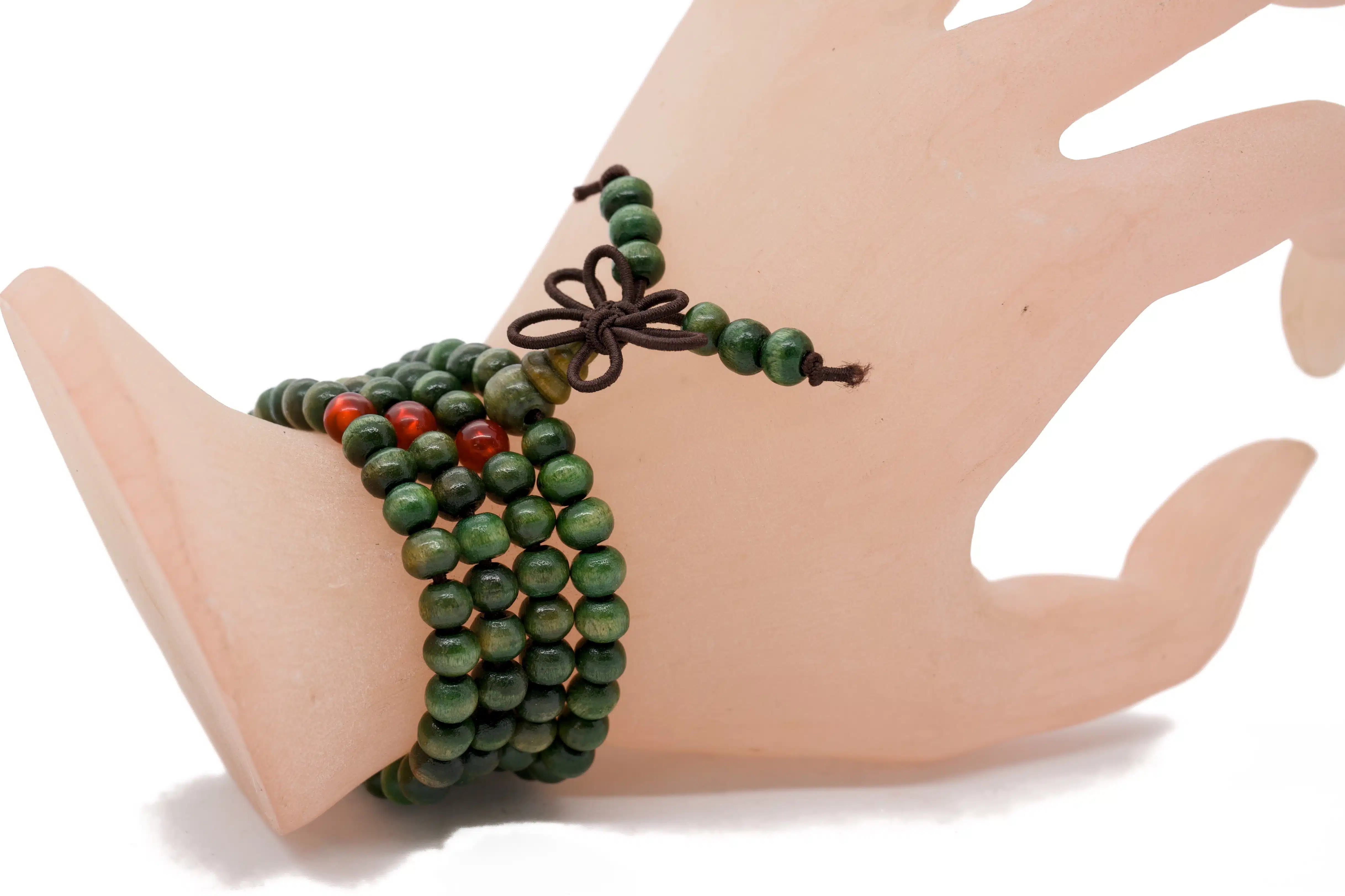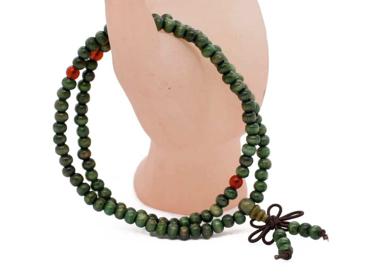 Großhandel – 6 mm Grüne Holzperlen-Mala-Armband (56cm), Elastisch für Meditation & Achtsamkeit