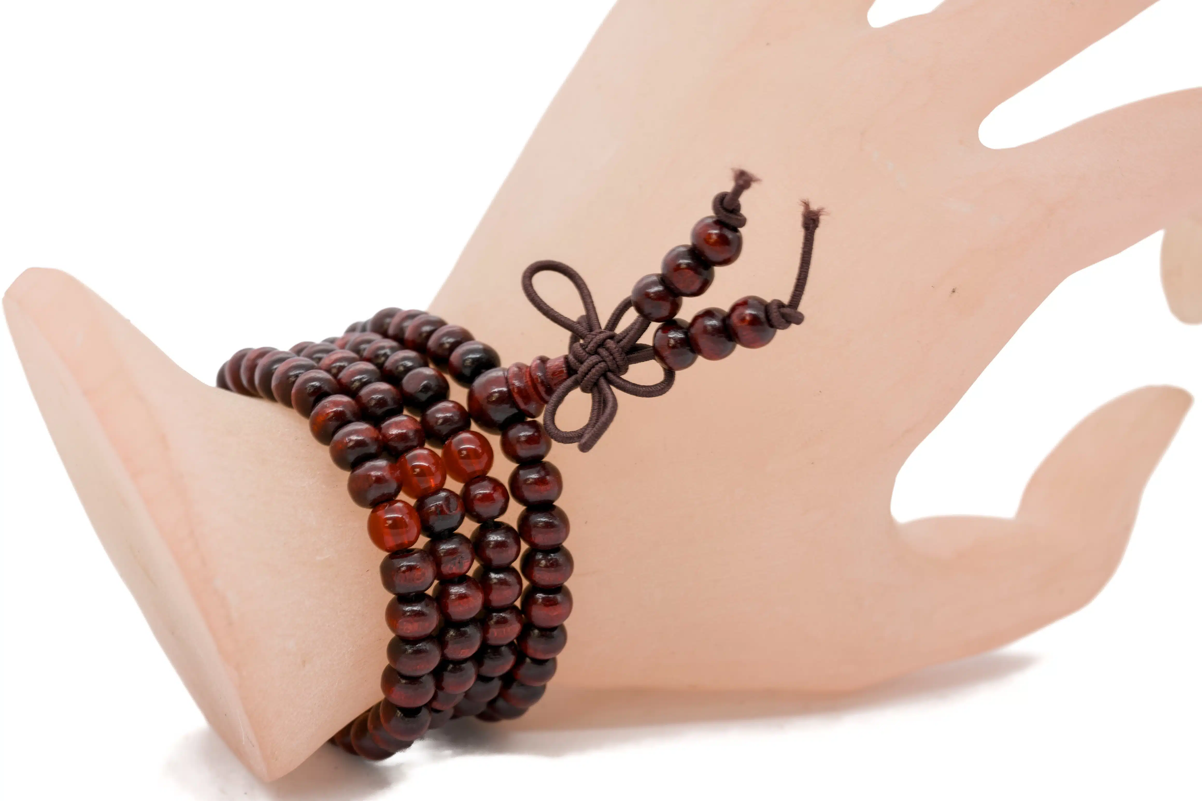 Großhandel – 6 mm Rote Holzperlen-Mala-Armband (56cm), Elastisch für Meditation & Achtsamkeit
