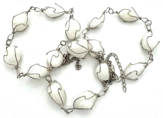 Diese wunderschöne, gemischte Edelstein-Drahtarmband ist modisch perfekt für jeden Anlass. Jedes Armband besteht aus polierten, natürlichen Halbedelsteinen – wie Achat, Onyx, Jade, Karneol und Quarz – sorgfältig von Hand mit langlebigem Metalldraht gewickelt. Die einzigartige Mischung aus Farben und Texturen verleiht jedem Design eine elegante, natürliche Note. Wird in Großhandelsmengen verkauft und bietet hervorragendes Preis-Leistungs-Verhältnis bei größeren Bestellungen. Füge natürliche Schönheit und lebendige Energie zu deinen handgefertigten Kreationen hinzu mit dieser hochwertigen Edelstein-Drahtkette.