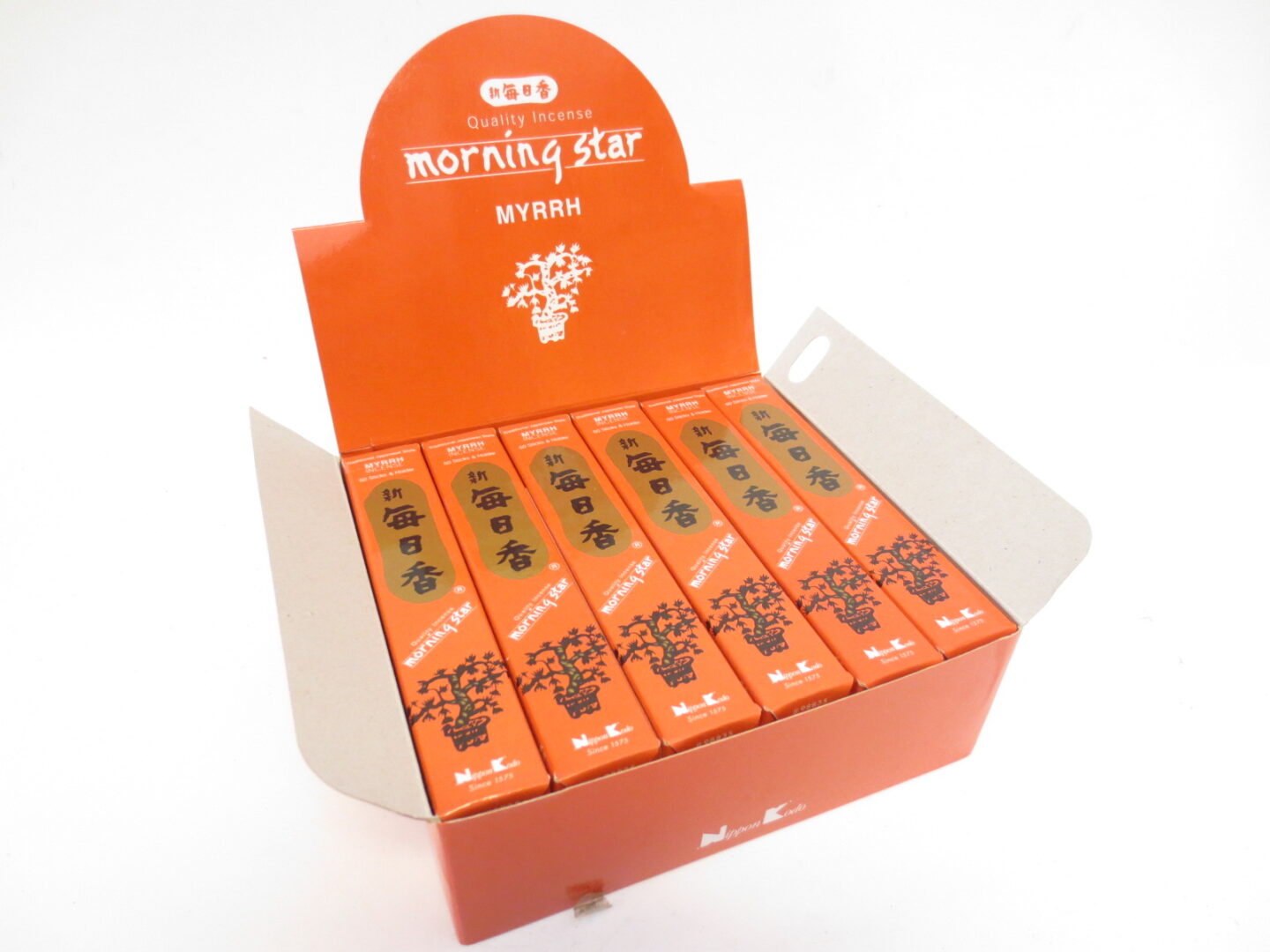 Das meistverkaufte Räucherwerk für den täglichen Gebrauch. Morning Star wurde in den 1960er Jahren in Japan entwickelt und erfreut sich seit über 40 Jahren nicht nur in Japan, sondern weltweit großer Beliebtheit. Die kraftvollen Düfte dieser Kollektion, kombiniert mit hochwertigen Zutaten wie reinen Blütenessenzen und aromatischen Hölzern, haben dieses Räucherwerk zu einer weltweit beliebten und vertrauenswürdigen Marke gemacht. Morning Star eignet sich perfekt für eine entspannende Atmosphäre bei Meditation, Gebet und Yoga. Die kleine Packung enthält 50 Stäbchen. Morning Star-Stäbchen haben keinen Bambuskern, sodass beim Verbrennen kein Holzgeruch entsteht und Sie den wahren Duft genießen können. – Kein Bambuskern, sauberes Abbrennen, reiner Duft – In der Box befindet sich ein Keramikfliesenbrenner – Perfekt für den täglichen Gebrauch – Zum Meditieren, Entspannen, Lesen, Musikhören und für innere Ruhe – Sehr geringe Rauchentwicklung