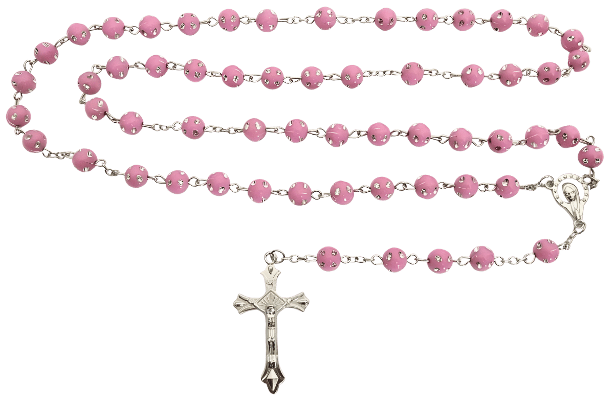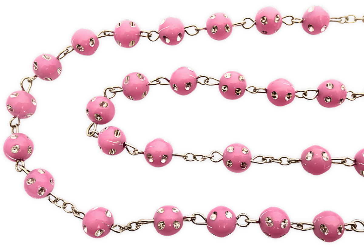 Rosenkränze sind momentan sehr beliebt. Ein Rosenkranz besteht aus einer Kette mit runden Perlen und einem stählernen Kreuz.Â