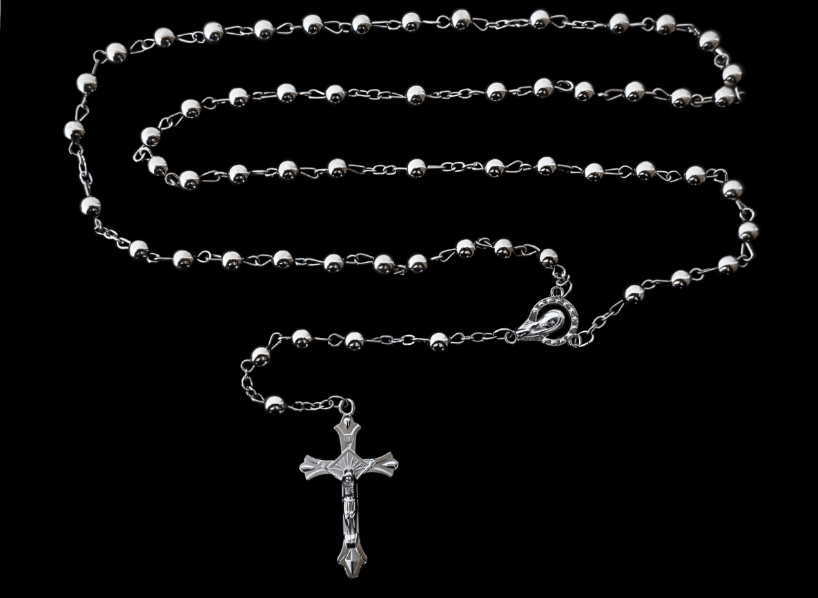 Rosenkränze sind momentan sehr beliebt. Ein Rosenkranz besteht aus einer Kette mit runden Perlen und einem stählernen Kreuz.Â