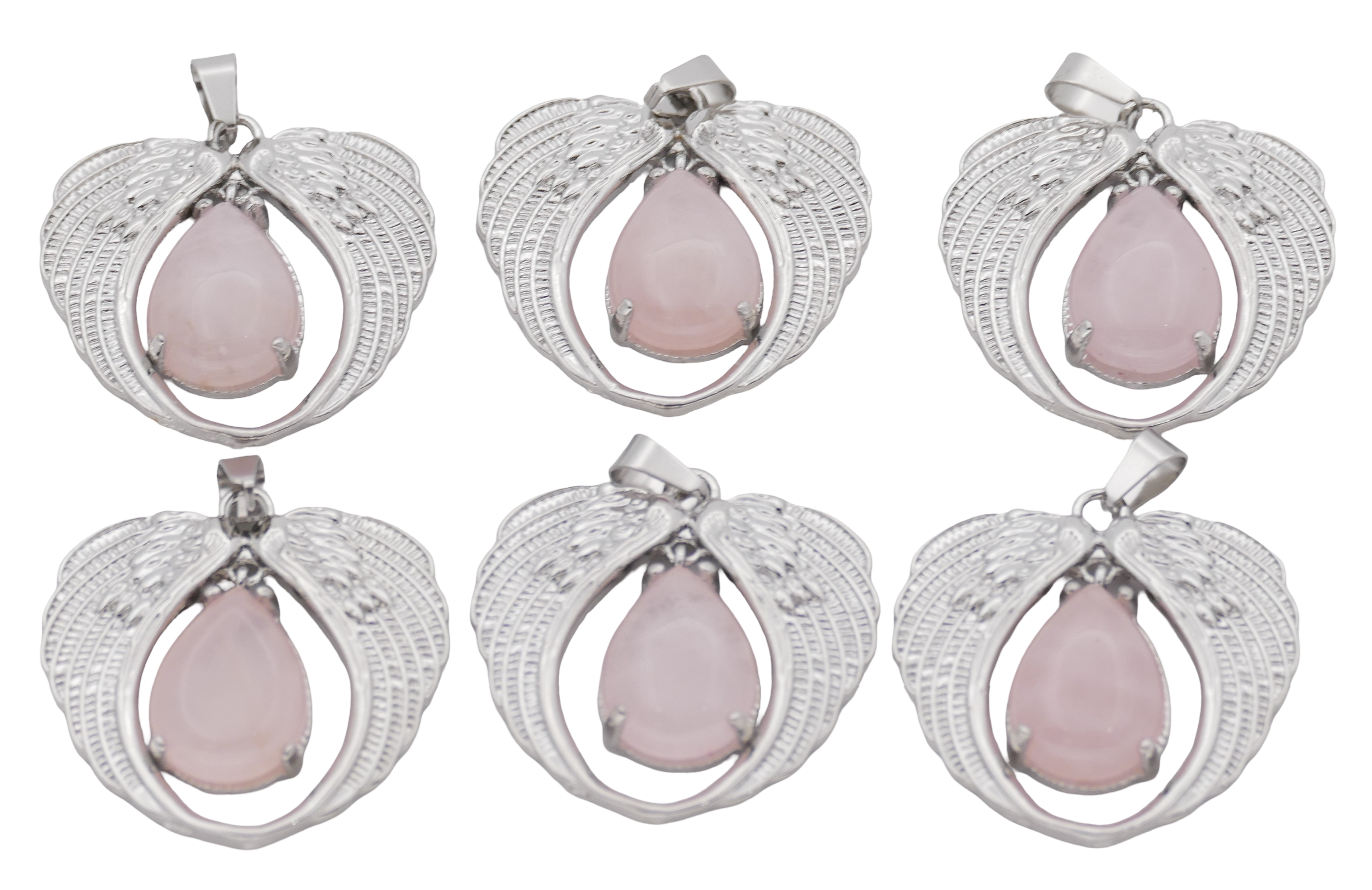 Großhandel – Anhänger Engelsflügel mit Rosenquarz (Set mit 6 Stück)
