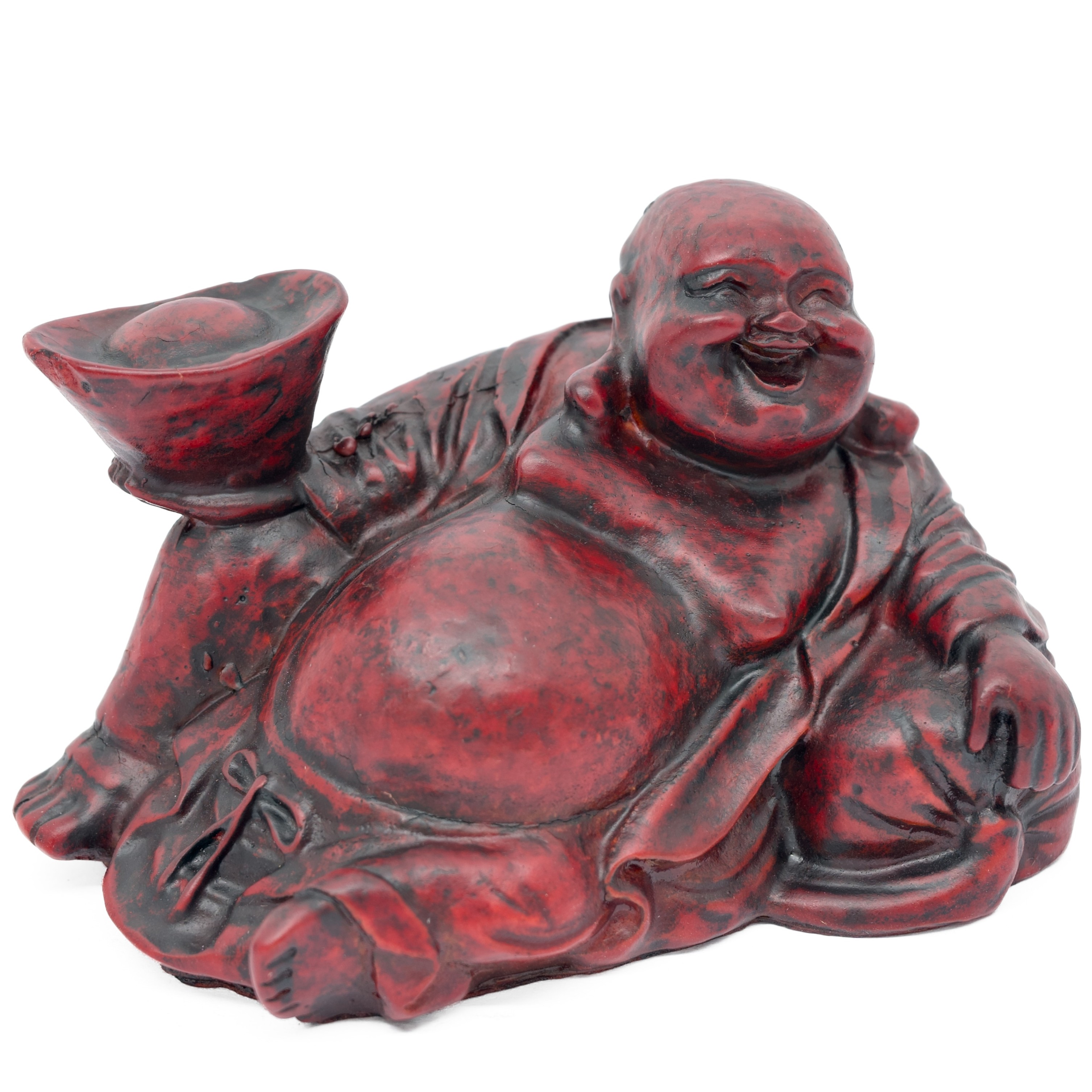 Bringen Sie Freude, Entspannung und Fülle in jeden Raum mit dieser kunstvoll gestalteten Liegenden Lachender Buddha Figur. In einer entspannten Liegeposition mit strahlendem Lächeln dargestellt, symbolisiert diese dekorative Statue Zufriedenheit, Wohlstand und ein sorgenfreies Leben.