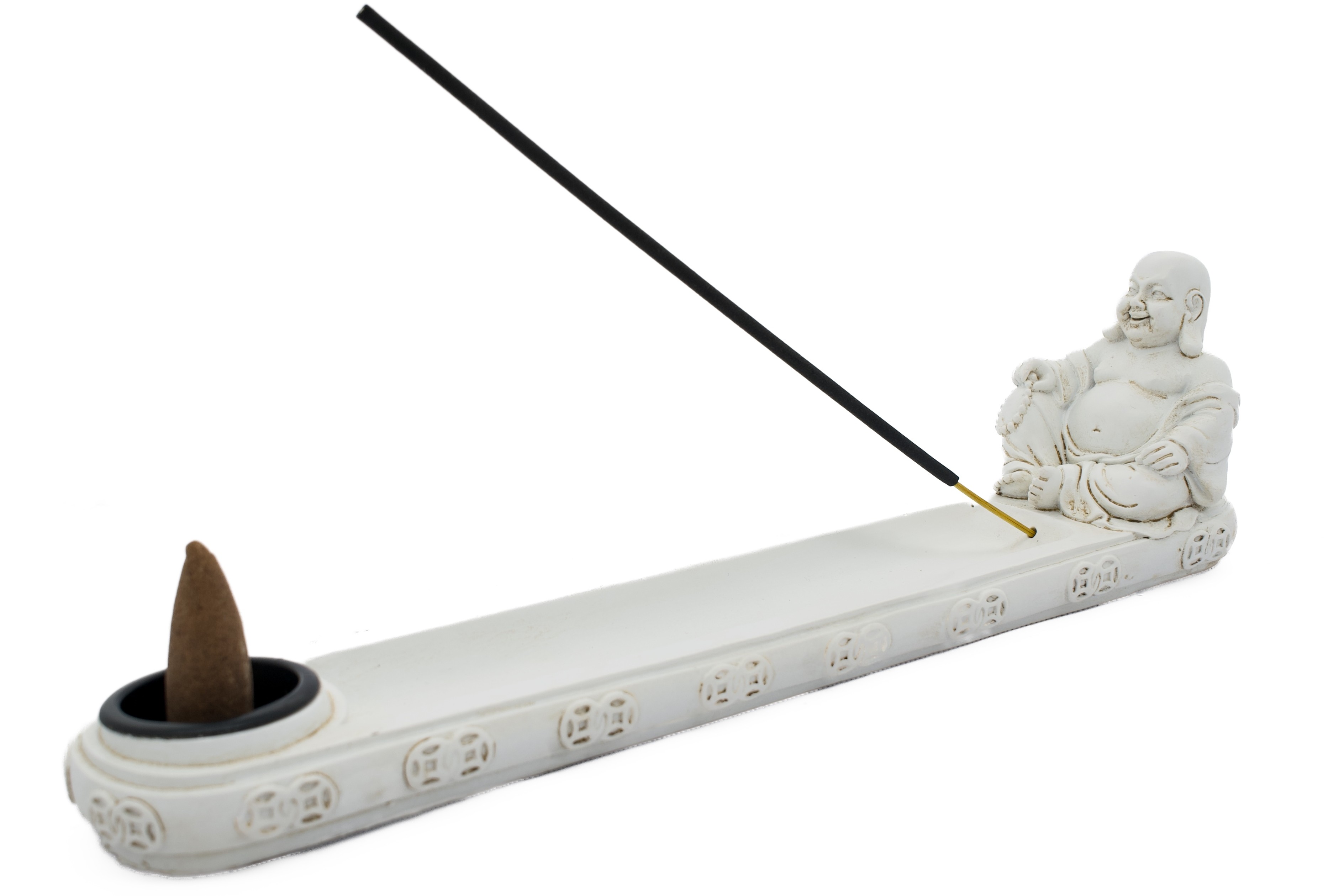 Großhandel – Weißer Sitzender Buddha Räucherhalter für Stäbchen & Kegel