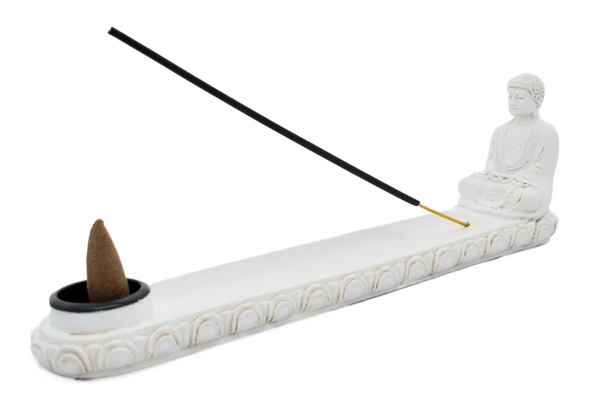 Großhandel – Weißer Sitzender Japanisch Buddha Räucherhalter für Stäbchen & Kegel