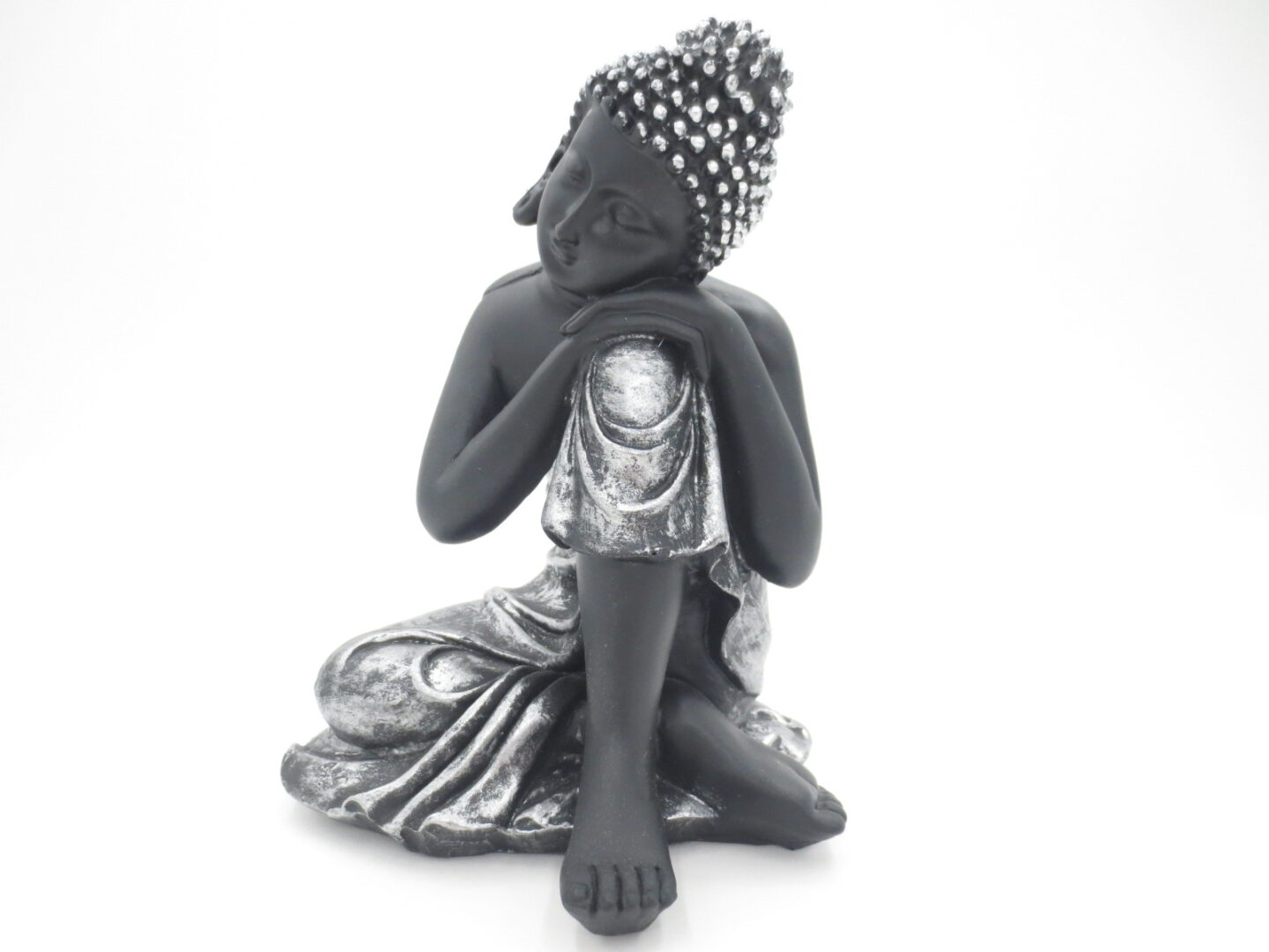 Schafende Buddha in silber / schwarz. Erhältlich in 3 verschiedenen Größen.