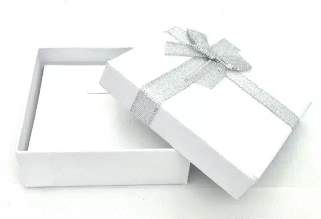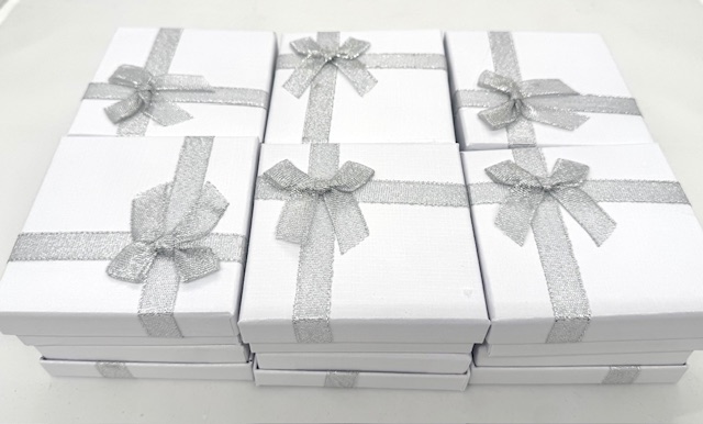 Luxuriöse und wunderschöne Geschenkbox in Silber für Armbänder, Halsketten und Ohrringe.