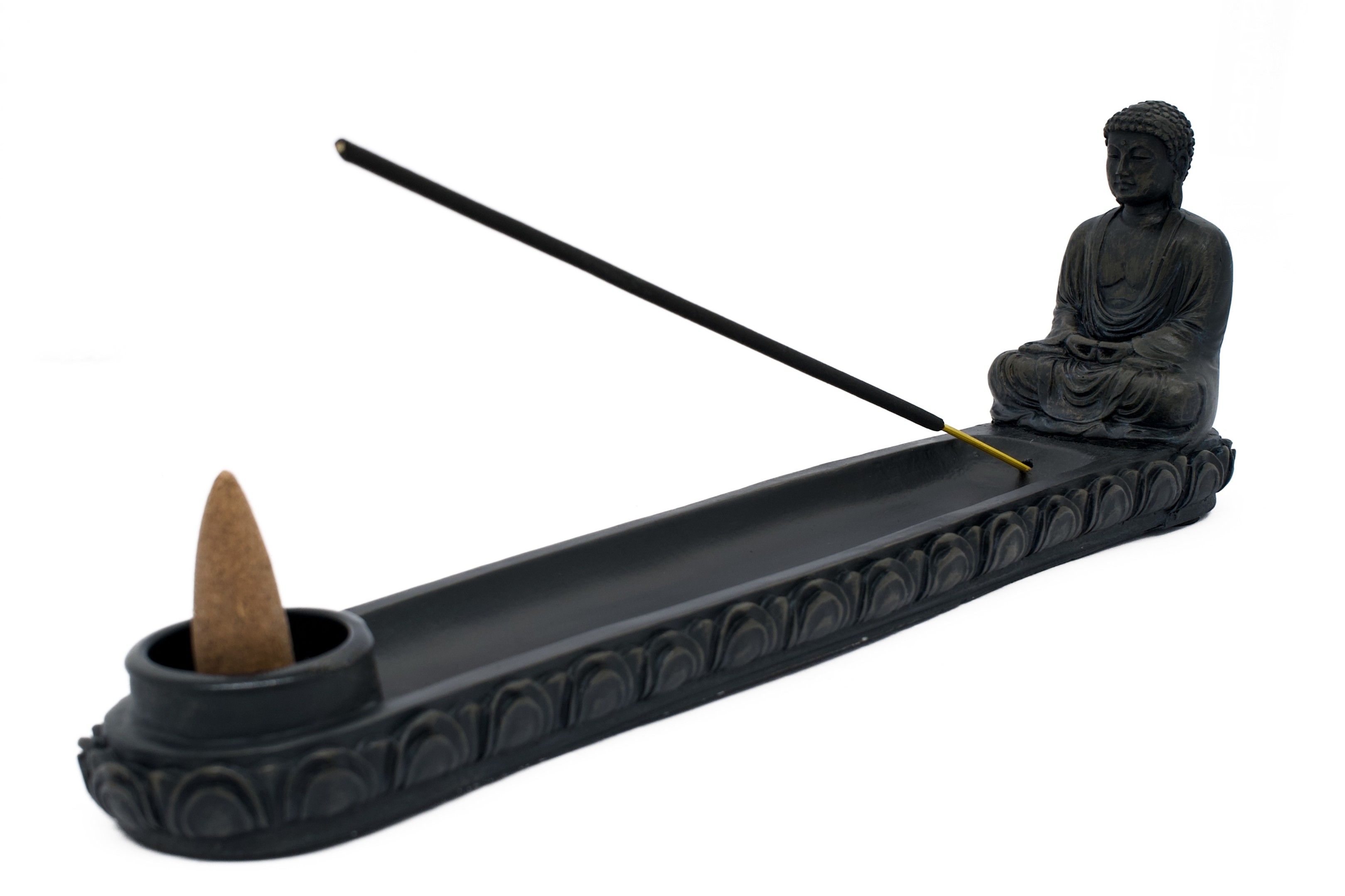 Großhandel – Schwarzer Sitzender Japanisch Buddha Räucherhalter für Stäbchen & Kegel