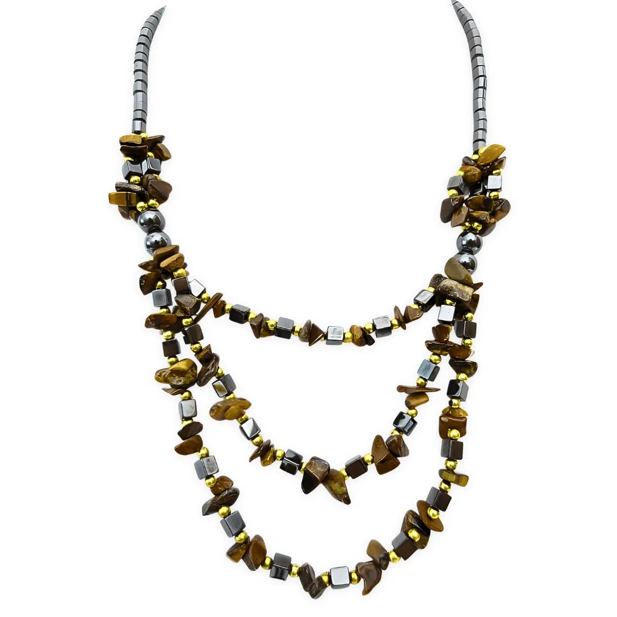 Sehr chique Kette mit 3 Reihen bestehend aus Edelsteinen und Hämatit-Steinchen.