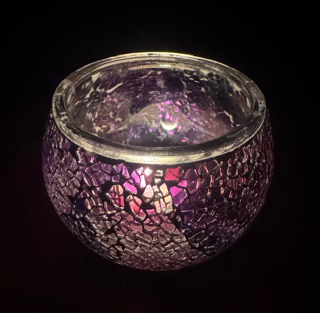 Teelichthalter aus Mosaikglas – Lila-Silber