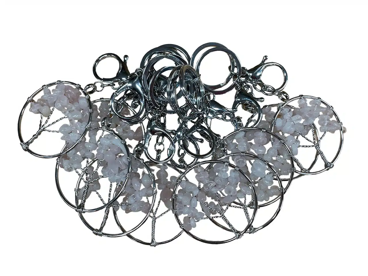 Großhandel – Lebensbaum-Schlüsselanhänger mit Rosenquarz-Edelsteinen