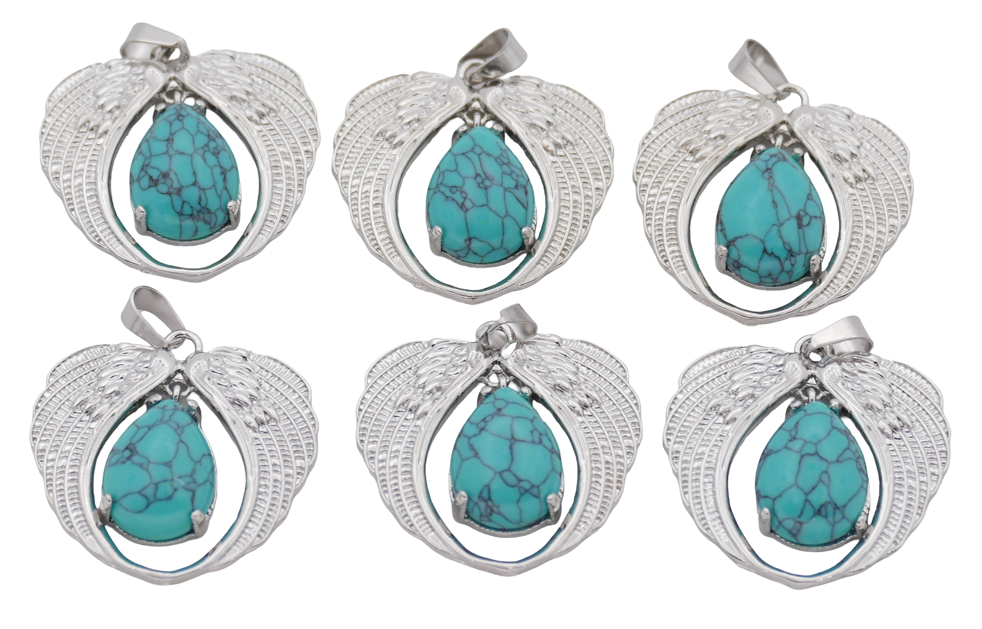 Großhandel – Türkis Engelsflügel-Anhänger aus Edelstein (Set mit 6 Stück)