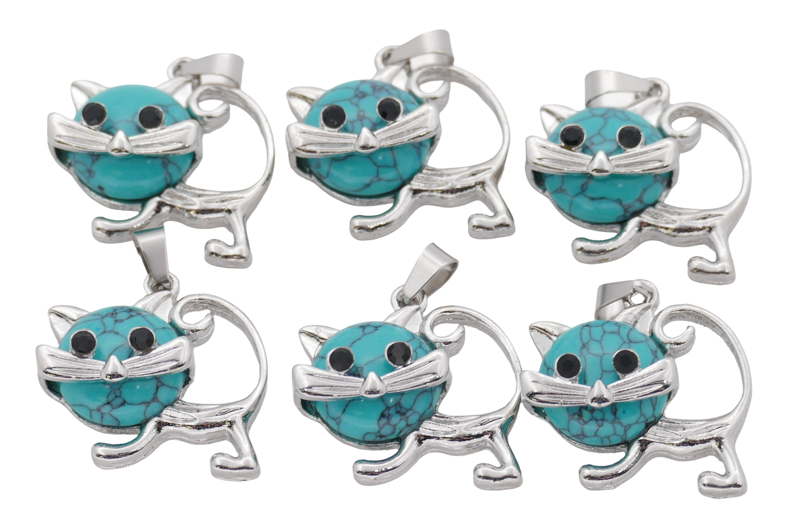 Großhandel – Türkis Katzen-Anhänger aus Edelstein (Set mit 6 Stück)