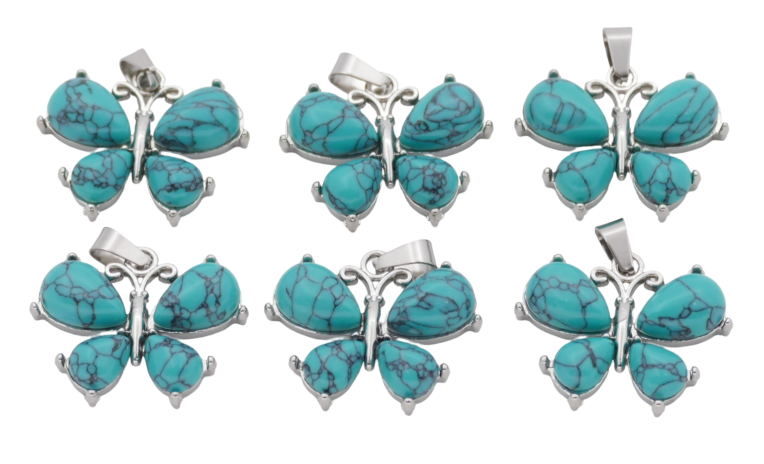 Großhandel – Türkis Schmetterling-Anhänger aus Edelstein (Set mit 6 Stück)