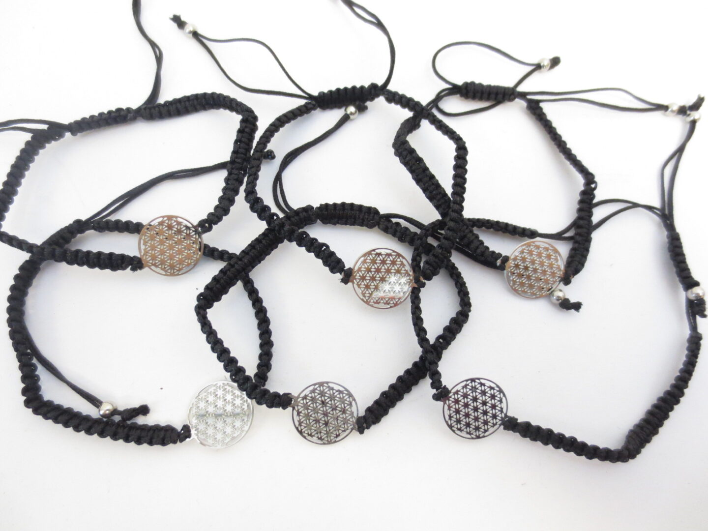 Großhandel – Verstellbare Armbänder „Blume des Lebens“ – Schwarz, 6 Stück