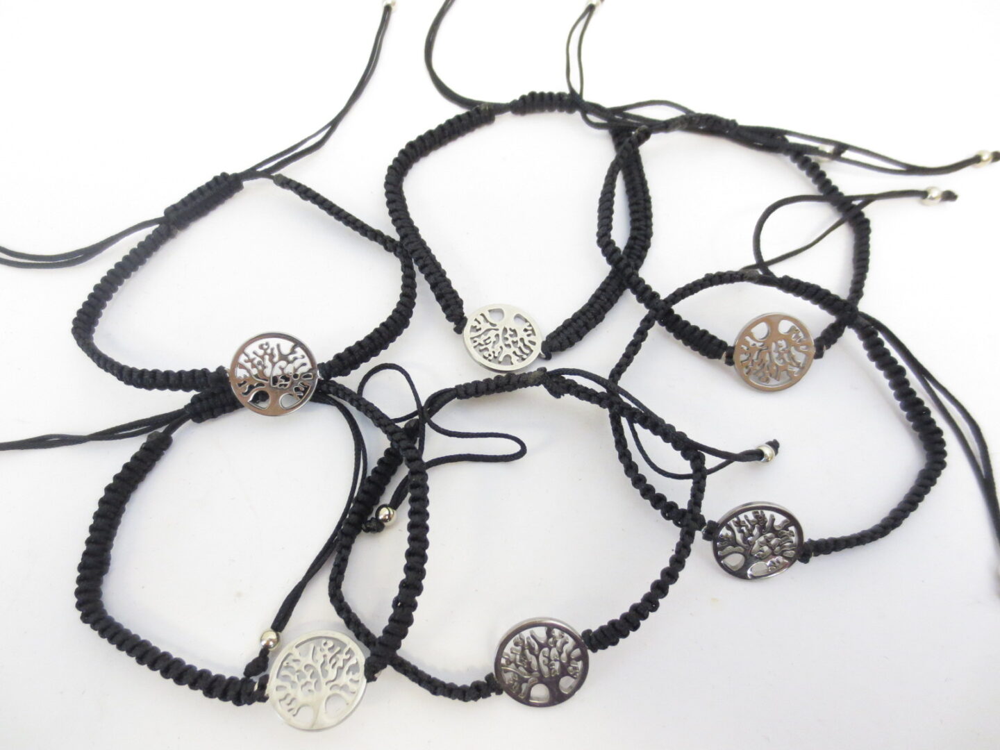 Diese Armbänder werden als modisches Accessoire, Glücksbringer oder Schutzbringer getragen. Sie bestehen aus geflochtenen Kordeln und sind mit einem Lebensbaum-Anhänger aus Edelstahl versehen. Die Kordeln sind durch Ziehen verstellbar und haben eine Einheitsgröße.